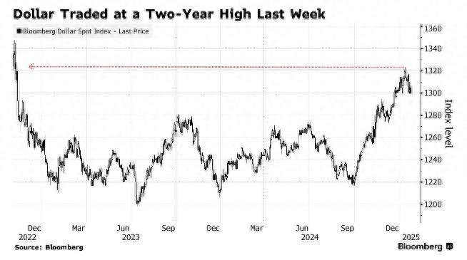 通常会因关税预期而升值的美元本周下跌了1.3%。周五,彭博美元现货指数在亚市下跌0.2%,此前特朗普在接受采访时表示,他“宁愿不对中国征收关税”。